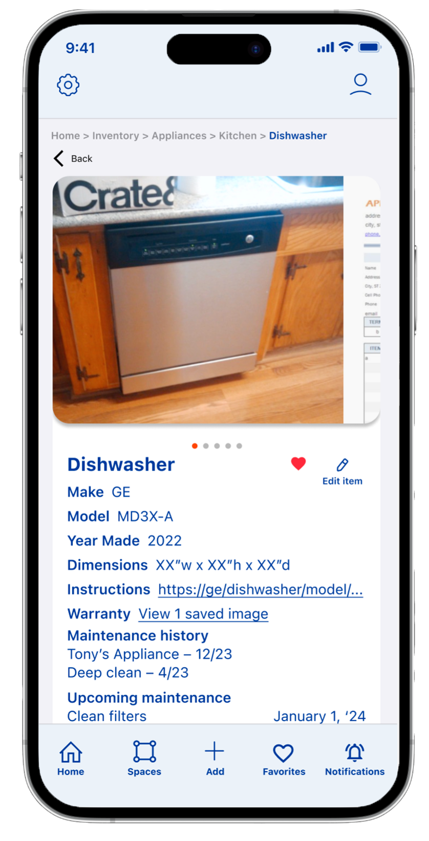 As users enter their pertinent home information and add items to their inventory, they can rest assured they can always edit their information as needed.