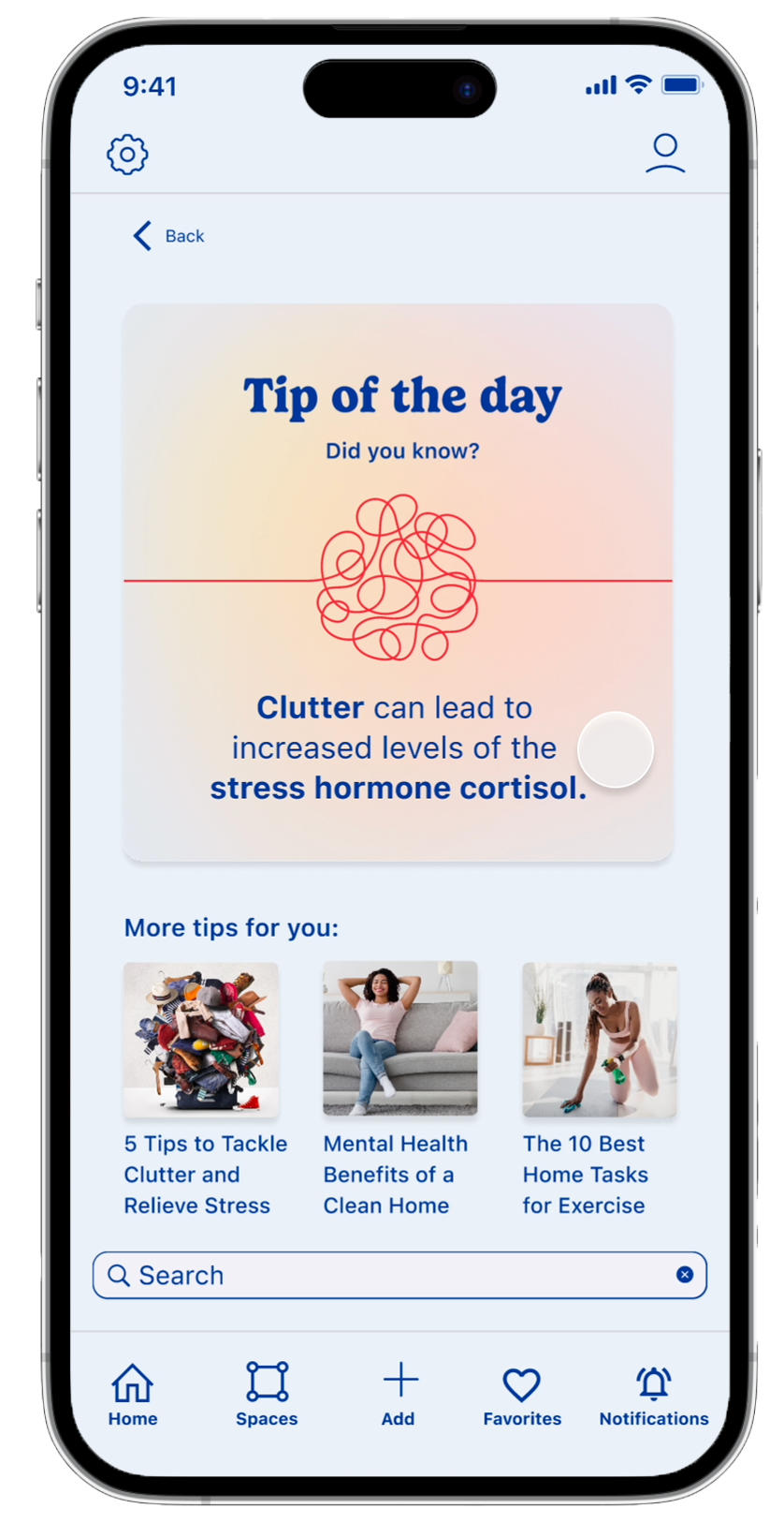 The Tips feature offers ways to learn about solutions to common issues that homeowners face, like advice on time & task management — helping homeowners incorporate their home’s care as a form of self-care by helping prevent or mitigate anxiety and stress stemming from home management.