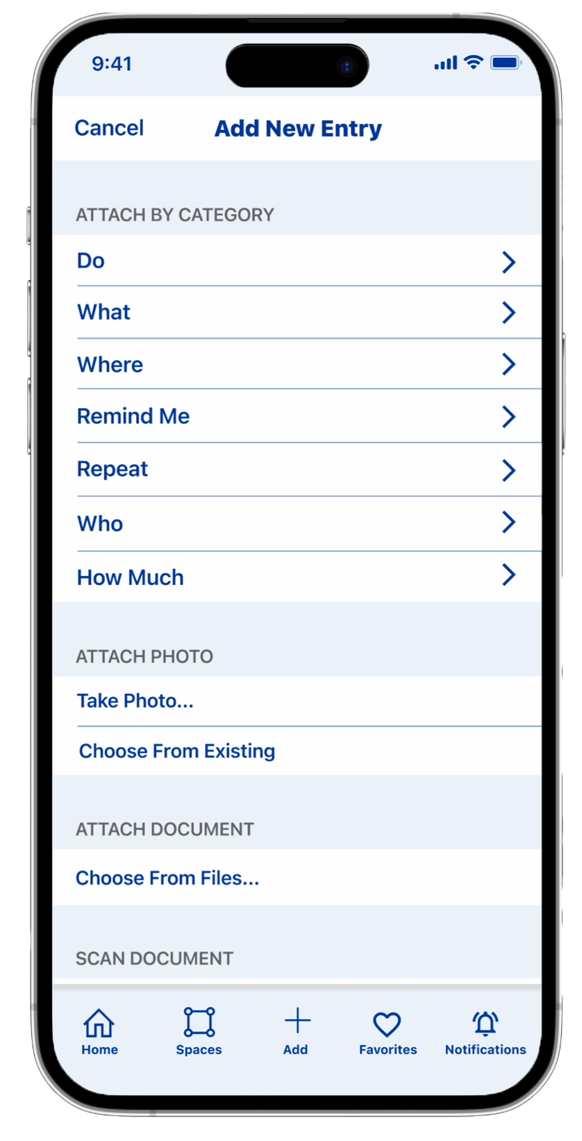 Although there are several ways to navigate throughout the app through categories based on how the user finds it easiest, Homeset’s Quick-Add feature helps users upload images or documents and store them in a fast, simple and logical way as they manage their information.