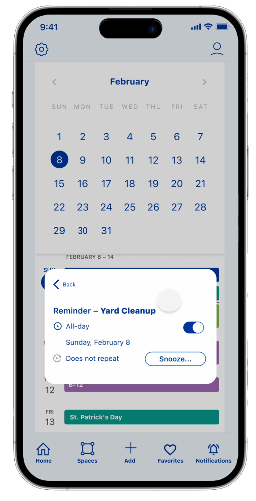Users can integrate their personal calendar with the HomeSet schedule so they can consider how their other planned activities can fit around their HomeSet tasks (or vice versa). The Reminders feature helps keep users abreast of upcoming tasks or services needed, but they want to be reminded when its more convenient, they can tell the app to remind them later.