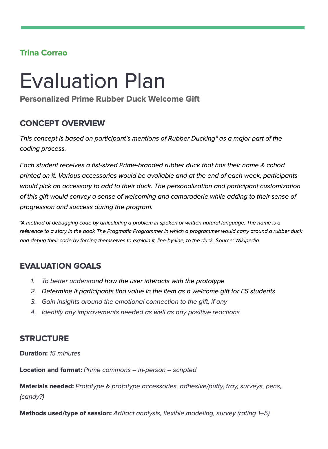 During my marginal participant observation, two students approached me and were helpful in offering insight as to what they would appreciate as a welcome gift. One mentioned a possible gift of a “really nice” Prime-branded insulated mug or bottle. The other suggested a rubber duck due to the meaningful tie it has to the Rubber Ducking coding method they are taught early in the program.